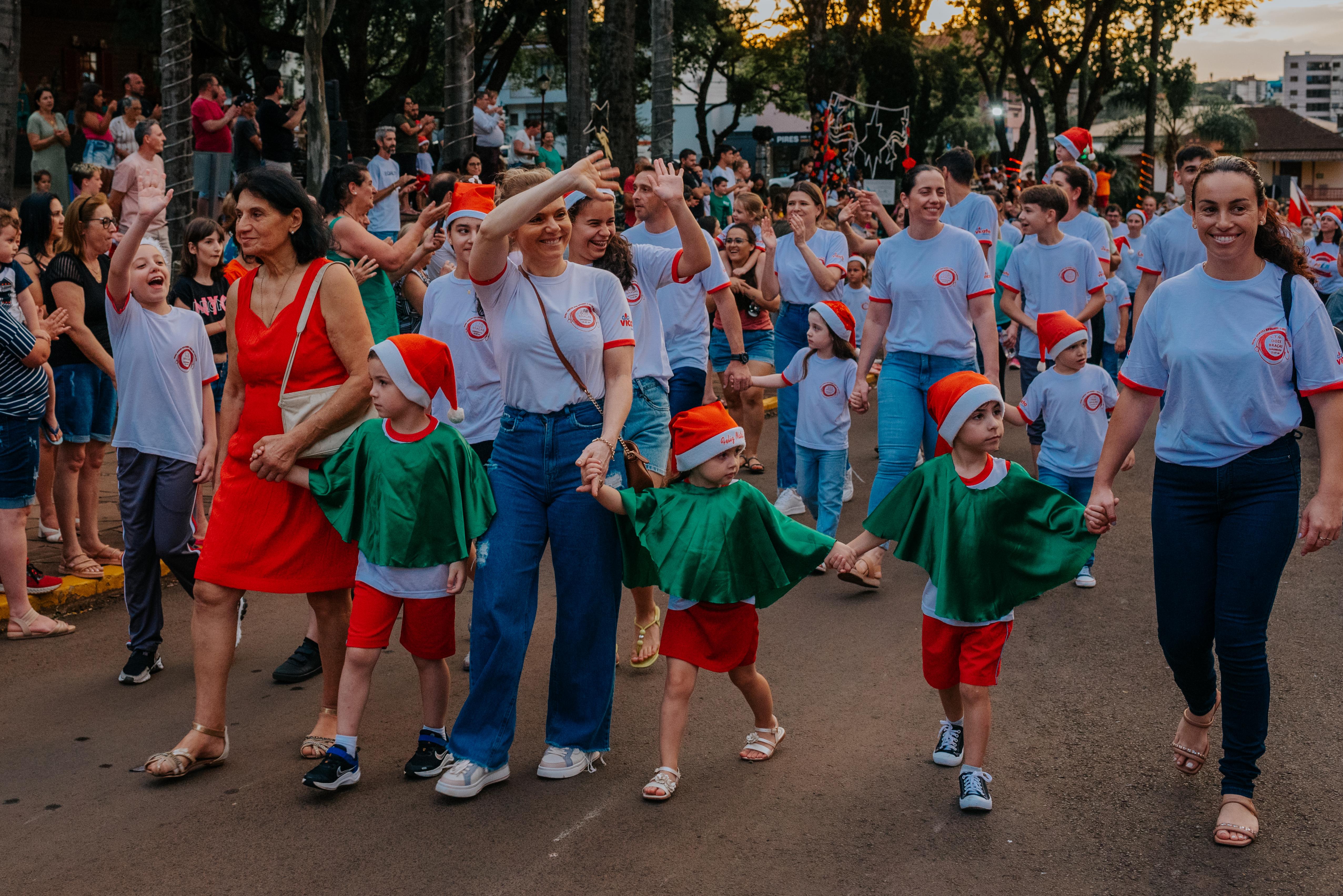 Já no entardecer, a Avenida Salzano da Cunha se transformou em uma verdadeira passarela mágica. O desfile temático de Natal, uma das novidades da programação do Natal Solidário de Sananduva, emocionou e contagiou o público presente.