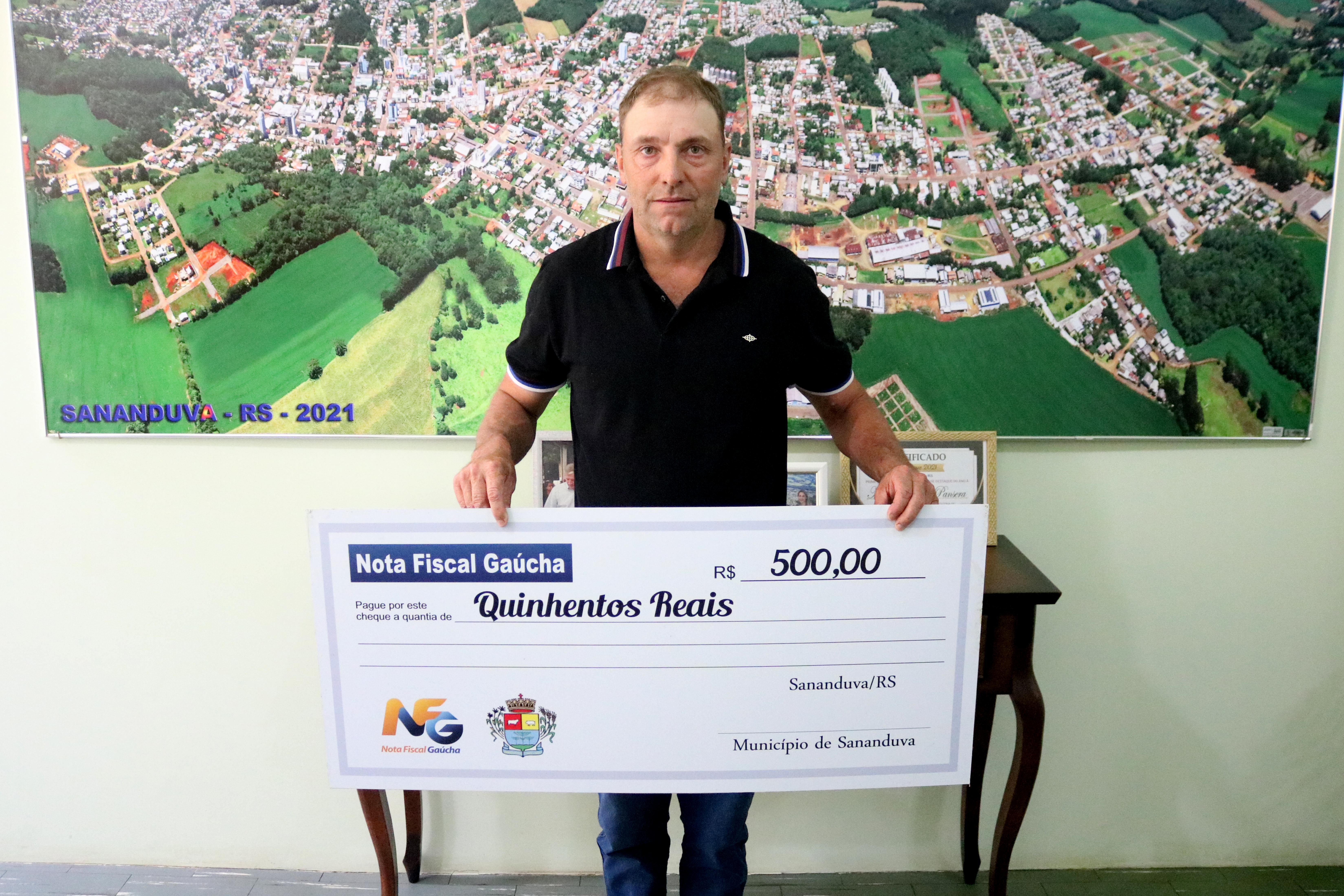 Vagner Marino Galina e Osmar Francisco Webber, moradores de Santo Expedito do Sul, foram os contemplados no sorteio municipal dos meses de novembro e dezembro, respectivamente, do Programa Nota Fiscal Gaúcha.