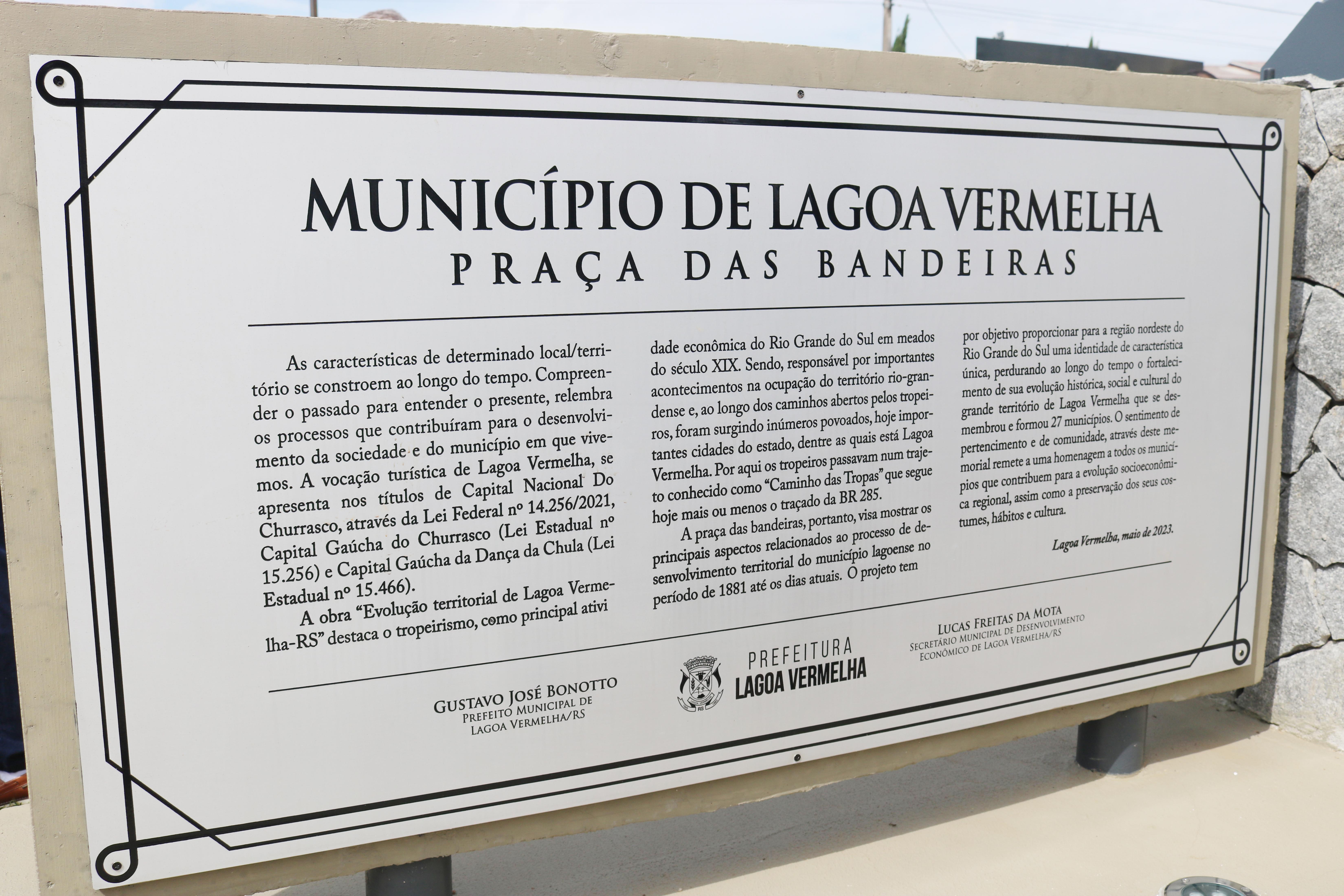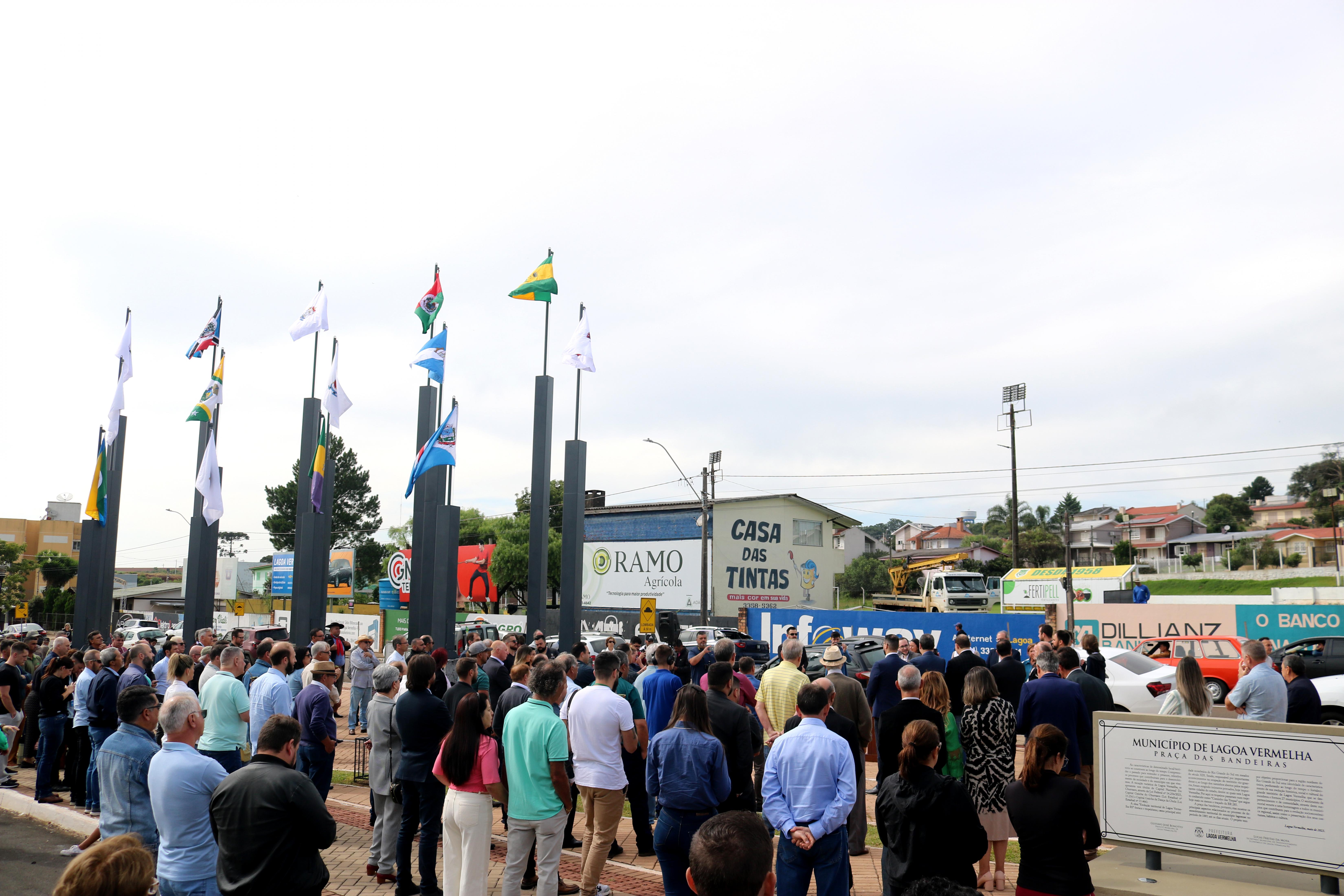 O local apresenta 28 bandeiras, sendo 27 de municípios que são “filhos”, “netos” ou “bisnetos” de Lagoa Vermelha, e uma bandeira central, do próprio município.