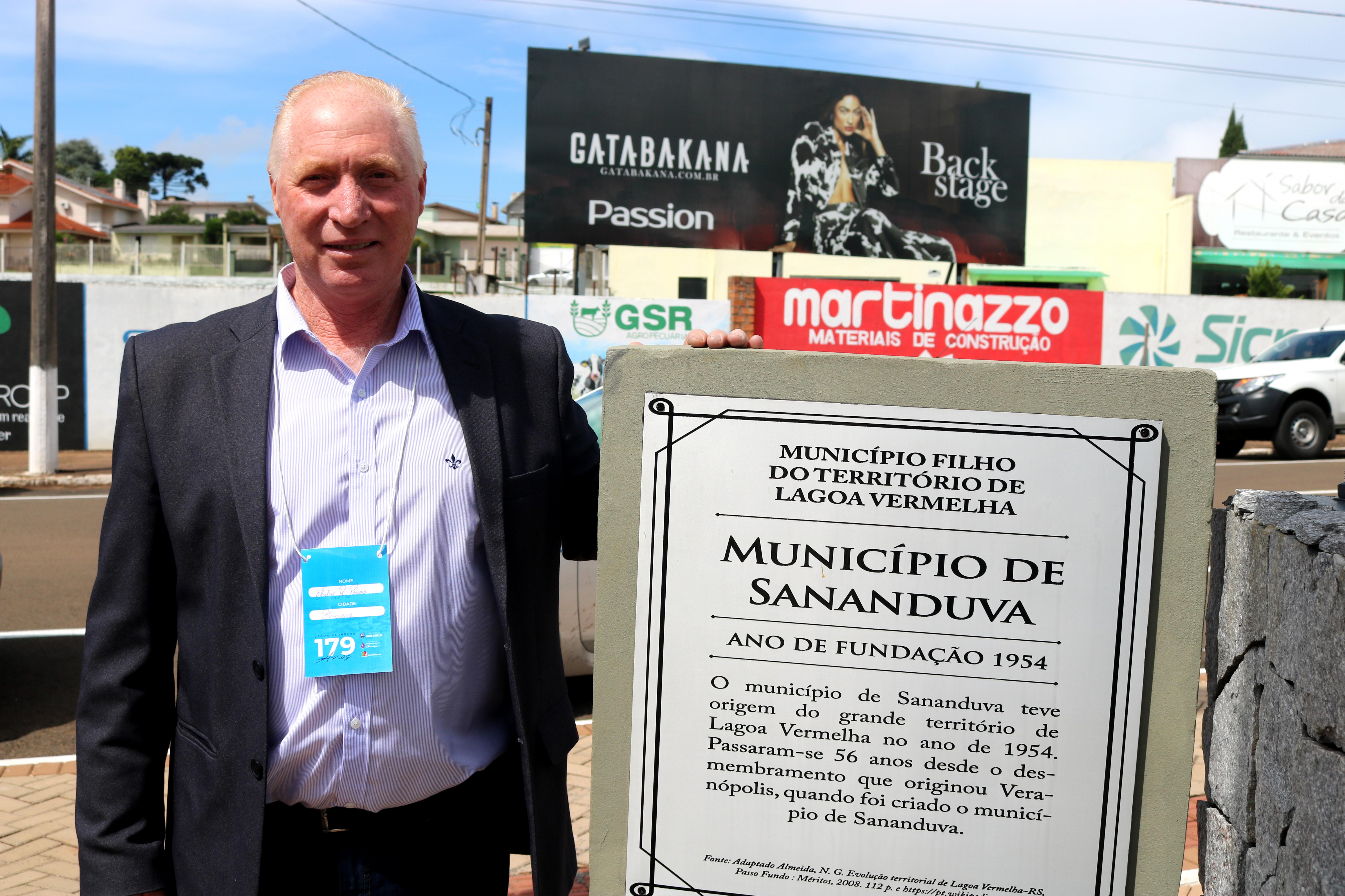 O prefeito Vermelho Pansera esteve em Lagoa Vermelha na manhã desta quinta-feira (25), participando do evento de inauguração da Praça das Bandeiras, que engloba as comemorações de 179 anos da cidade.