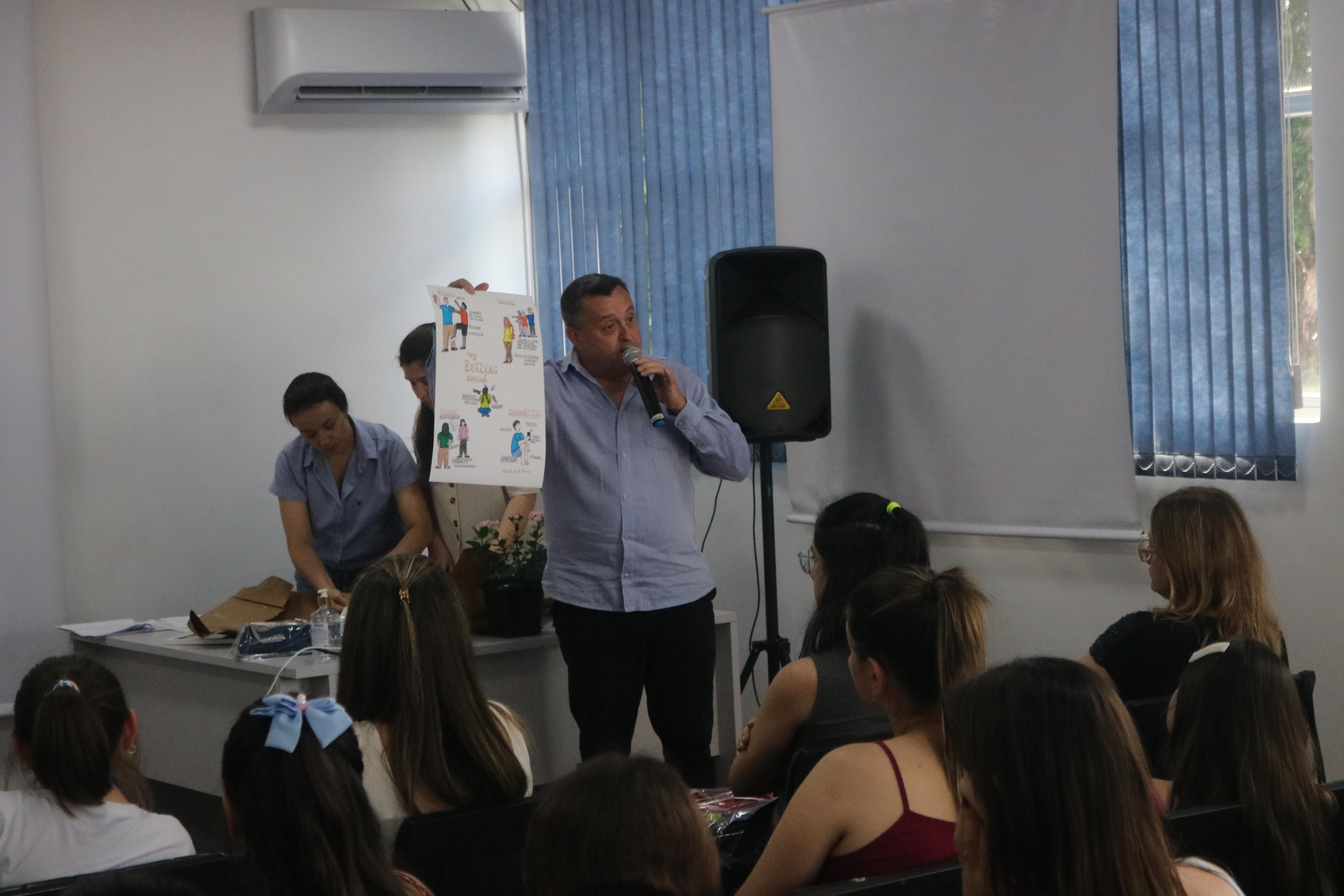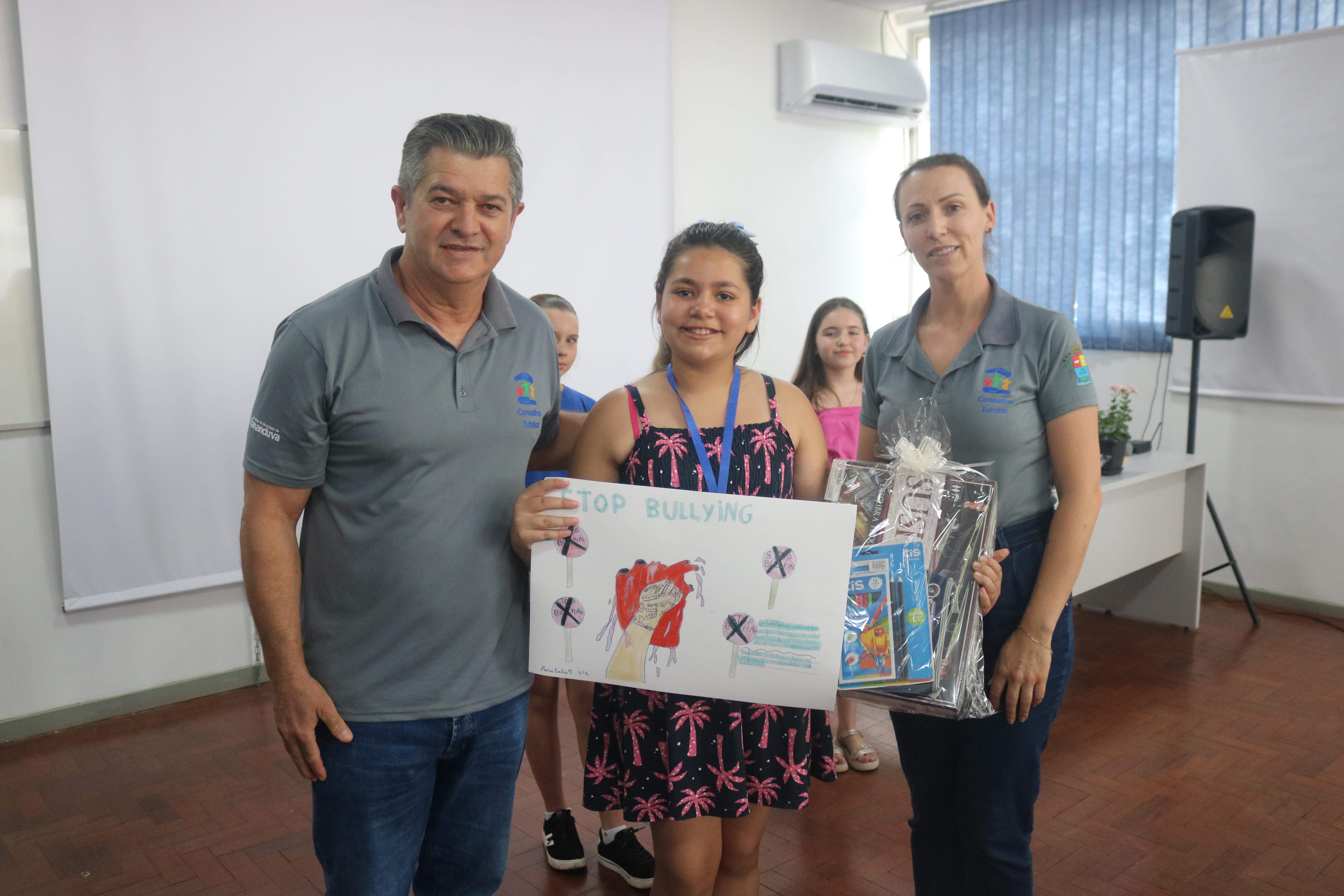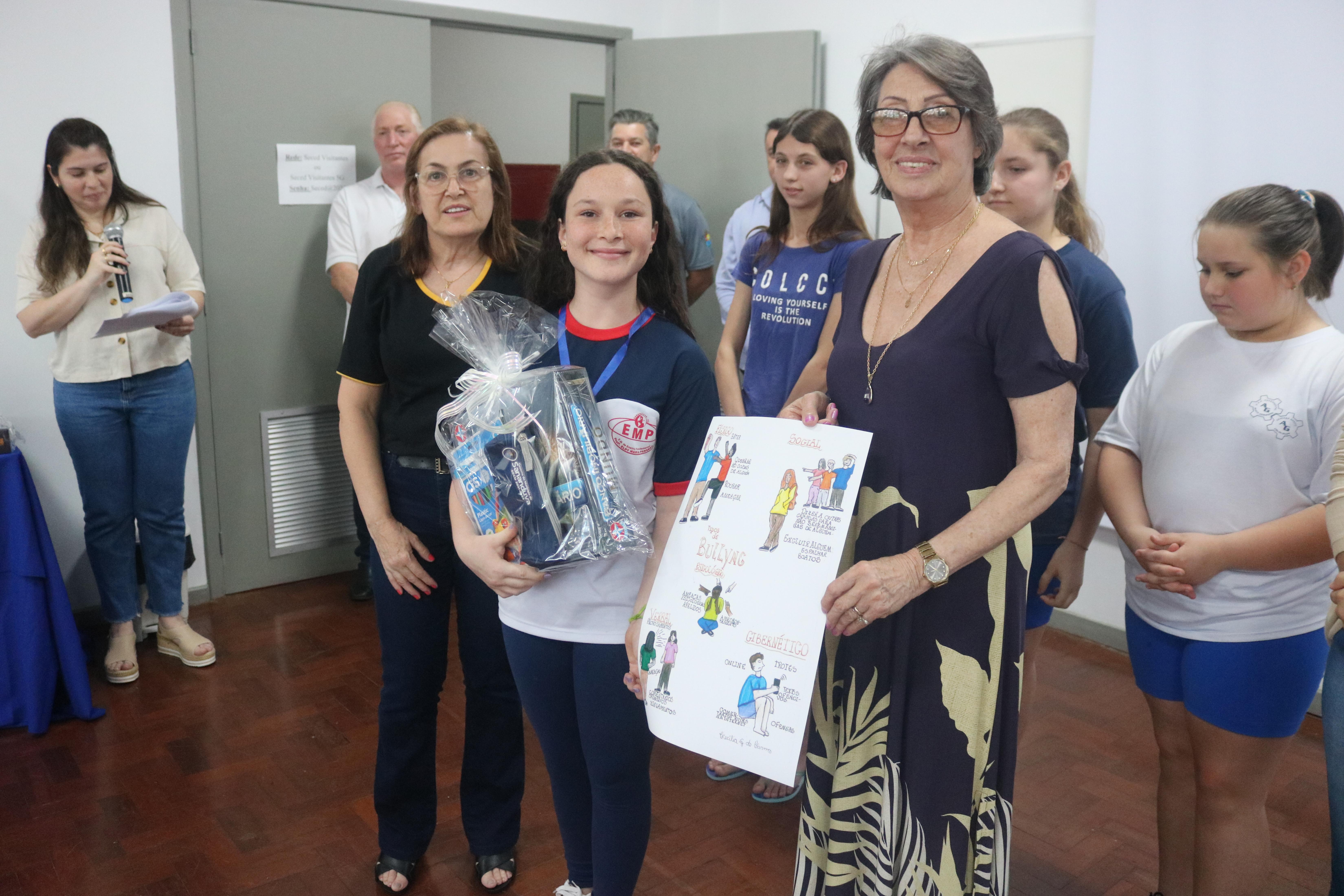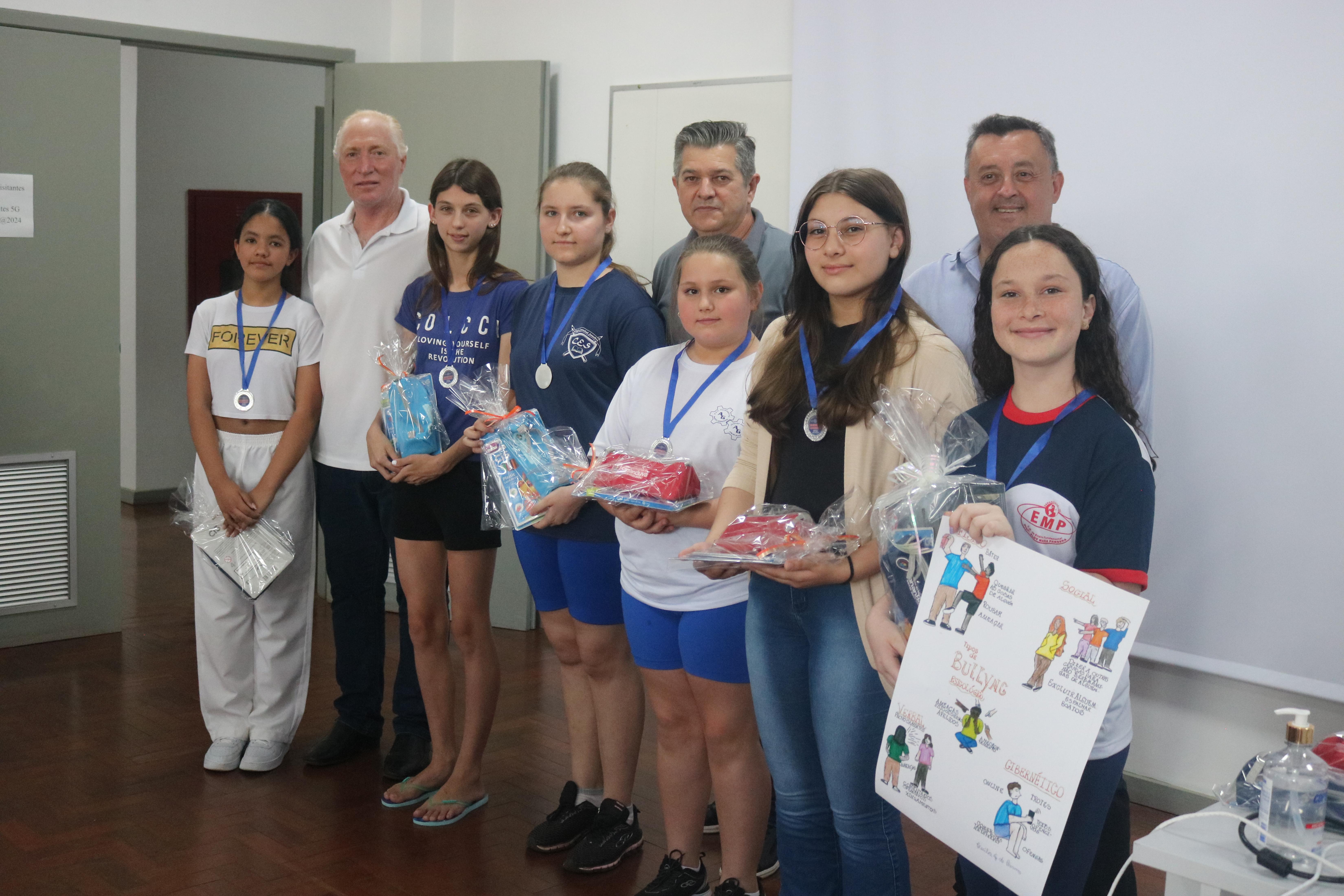 O ato de premiação contou com a presença de representantes da rede pública de ensino, do Conselho Tutelar, do prefeito Vermelho Pansera e do secretário interino da Educação, Cultura e Desportos, Carlos José Picolotto.