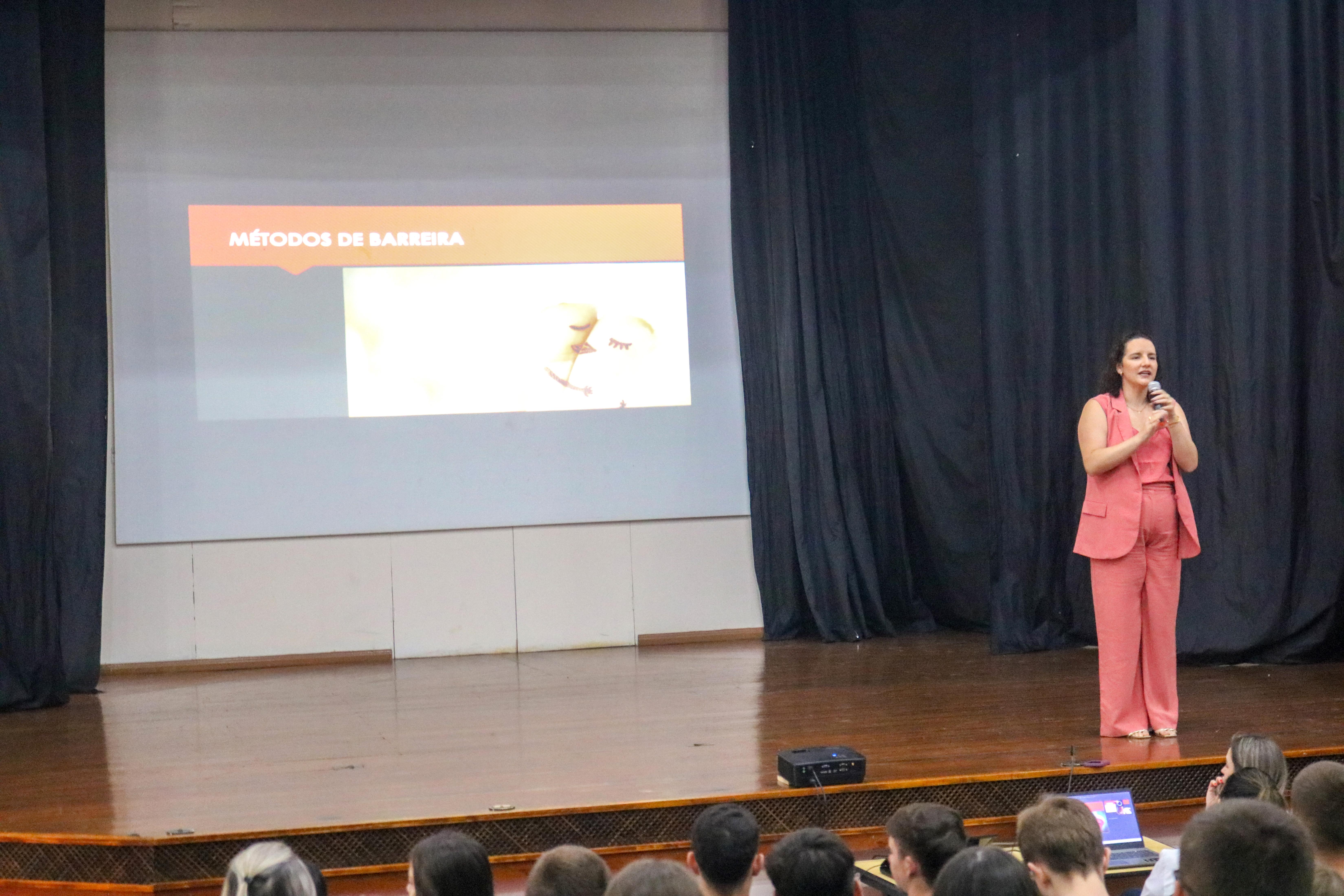 Ao longo da manhã, a Dr.ª Ana Flávia abordou as Infecções Sexualmente Transmissíveis (IST’s) de forma clara e objetiva, destacando que o conhecimento e início da conscientização nesta faixa etária é fundamental.