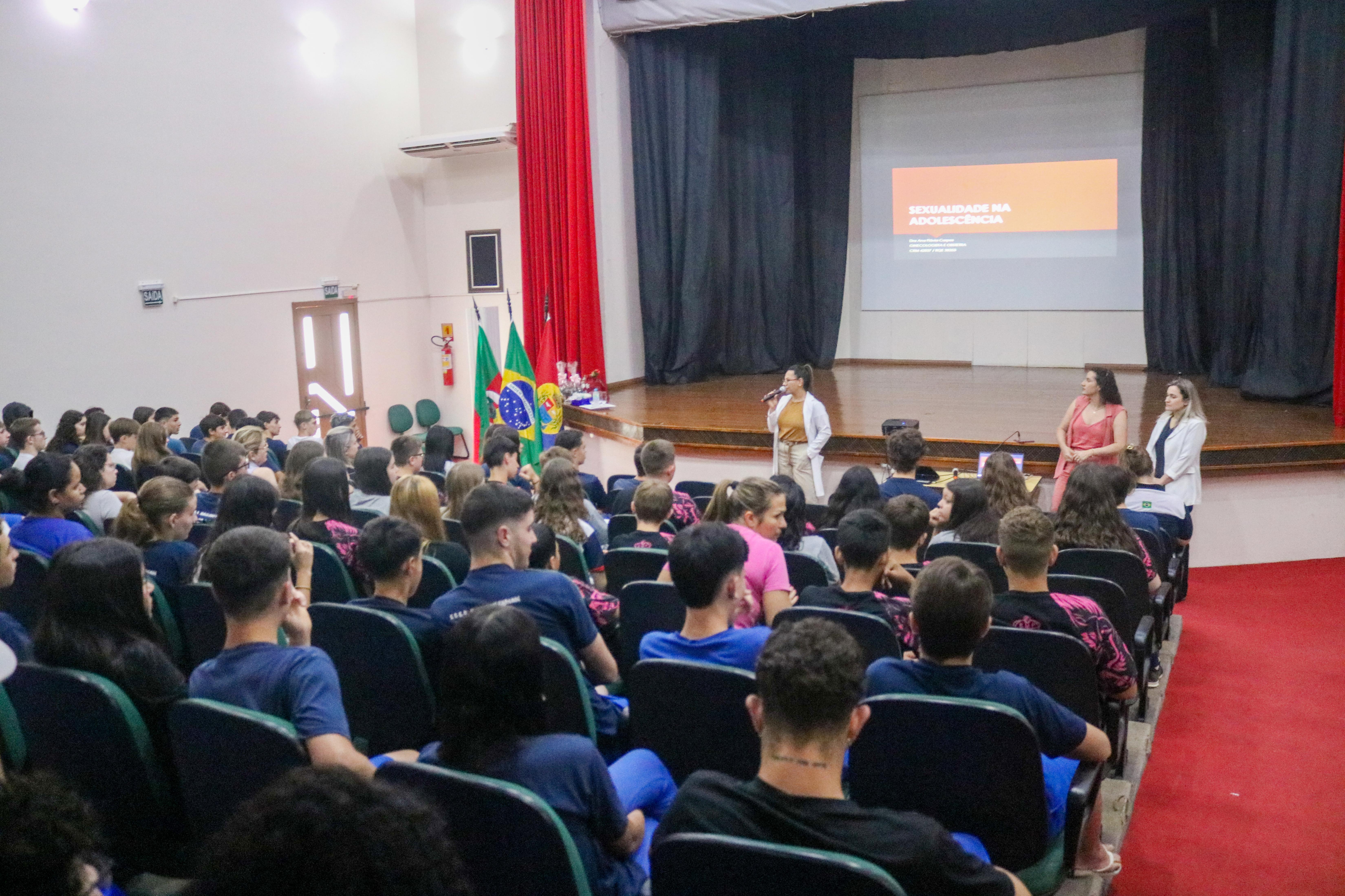 Na manhã da última terça-feira (26), os alunos do 9º ano das escolas da rede municipal, juntamente com estudantes do ensino médio do Colégio Estadual Sananduva, participaram de uma importante palestra ministrada pela médica obstetra e ginecologista Dr.ª Ana Flávia Carpes. O evento foi promovido pela Secretaria Municipal da Saúde, por meio das Unidades Básicas de Saúde Drª Eunice Kaross e Dr. Jaime da Cunha.