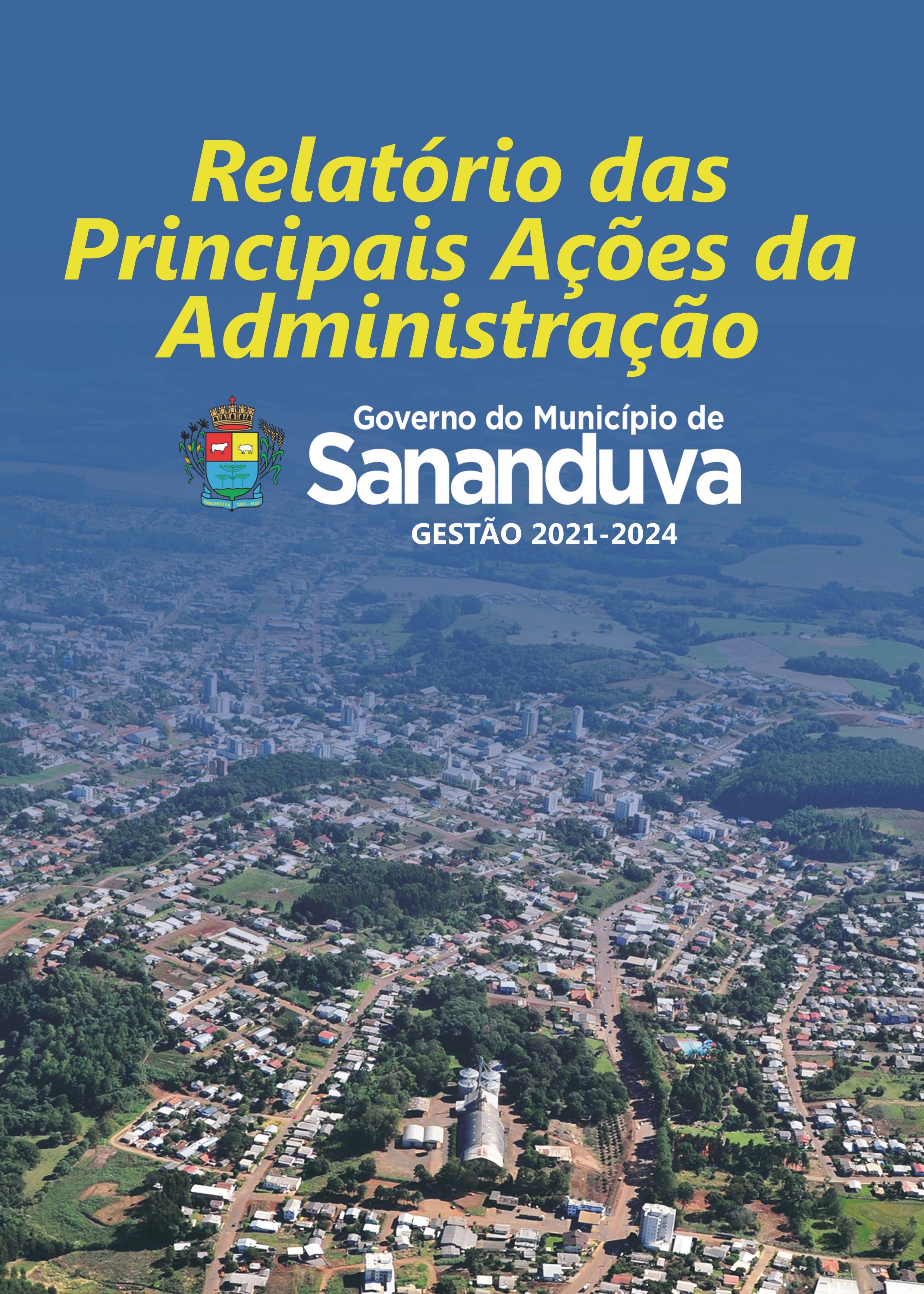 Ao decorrer dos últimos quatro anos, Sananduva avançou com muito trabalho e compromisso! Confira o Relatório das Principais Ações da Administração, uma revista especial que destaca os projetos, conquistas e serviços realizados em prol do desenvolvimento do município e do bem-estar da comunidade sananduvense.