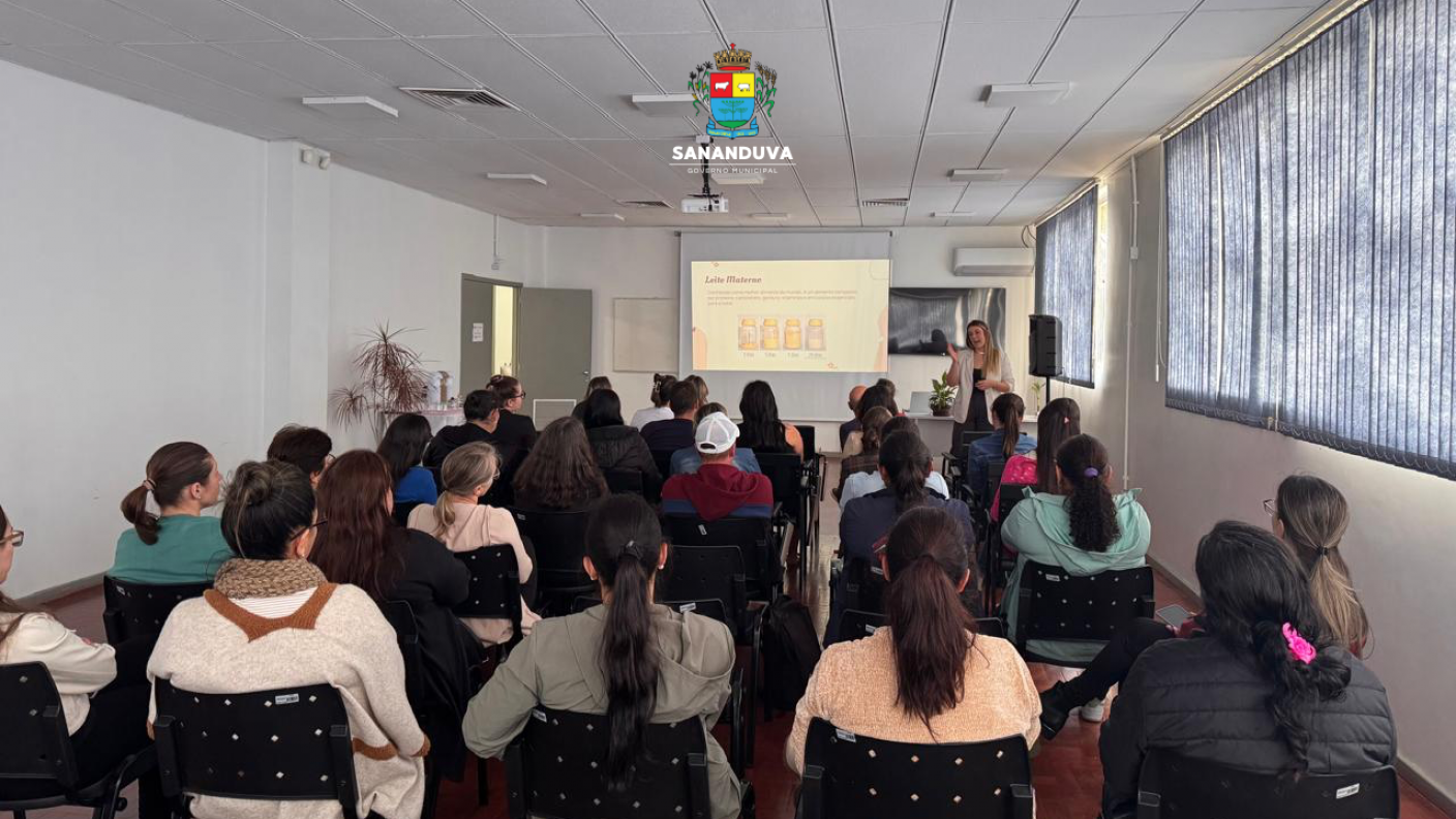 Na última terça-feira, dia 19, em alusão ao Agosto Dourado — mês dedicado à conscientização e promoção do aleitamento materno —, a Secretaria Municipal de Educação promoveu uma importante palestra no auditório da pasta. O encontro foi ministrado pela nutricionista e consultora em aleitamento materno Tanara Vanz, que compartilhou informações valiosas e atualizadas sobre os benefícios da amamentação para mães e bebês.