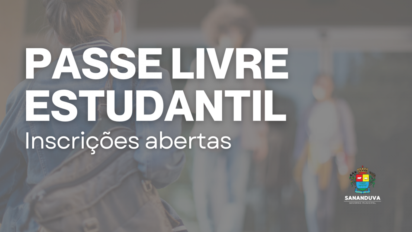 A Secretaria Municipal da Educação informa que as inscrições para o Programa Passe Livre Estudantil, referente ao segundo semestre letivo de 2025, estarão abertas nos dias 16 e 17 de outubro de 2025. O atendimento será realizado na sede da Secretaria, localizada na Avenida Salzano da Cunha, nº 300, 2º andar.