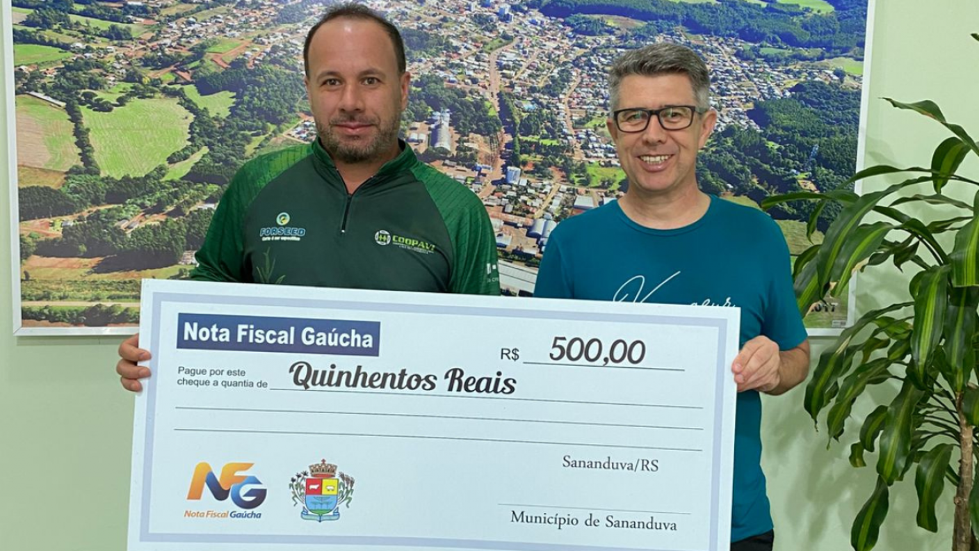 O ganhador esteve na Prefeitura de Sananduva para retirar seu prêmio, conquistado de forma simples: ao realizar compras no comércio local, solicitou a inclusão do CPF na nota fiscal, garantindo sua participação no sorteio estadual.